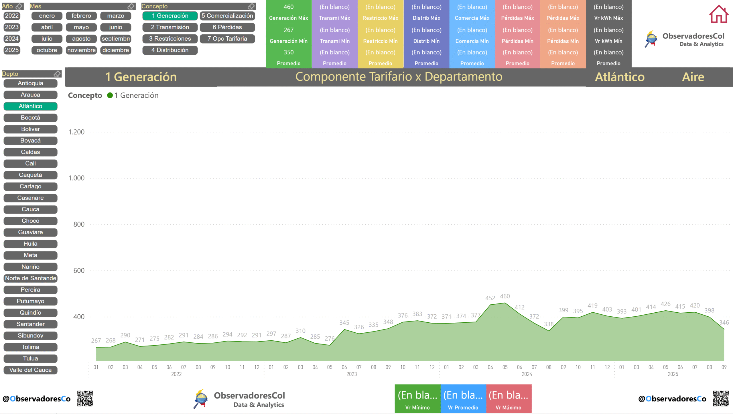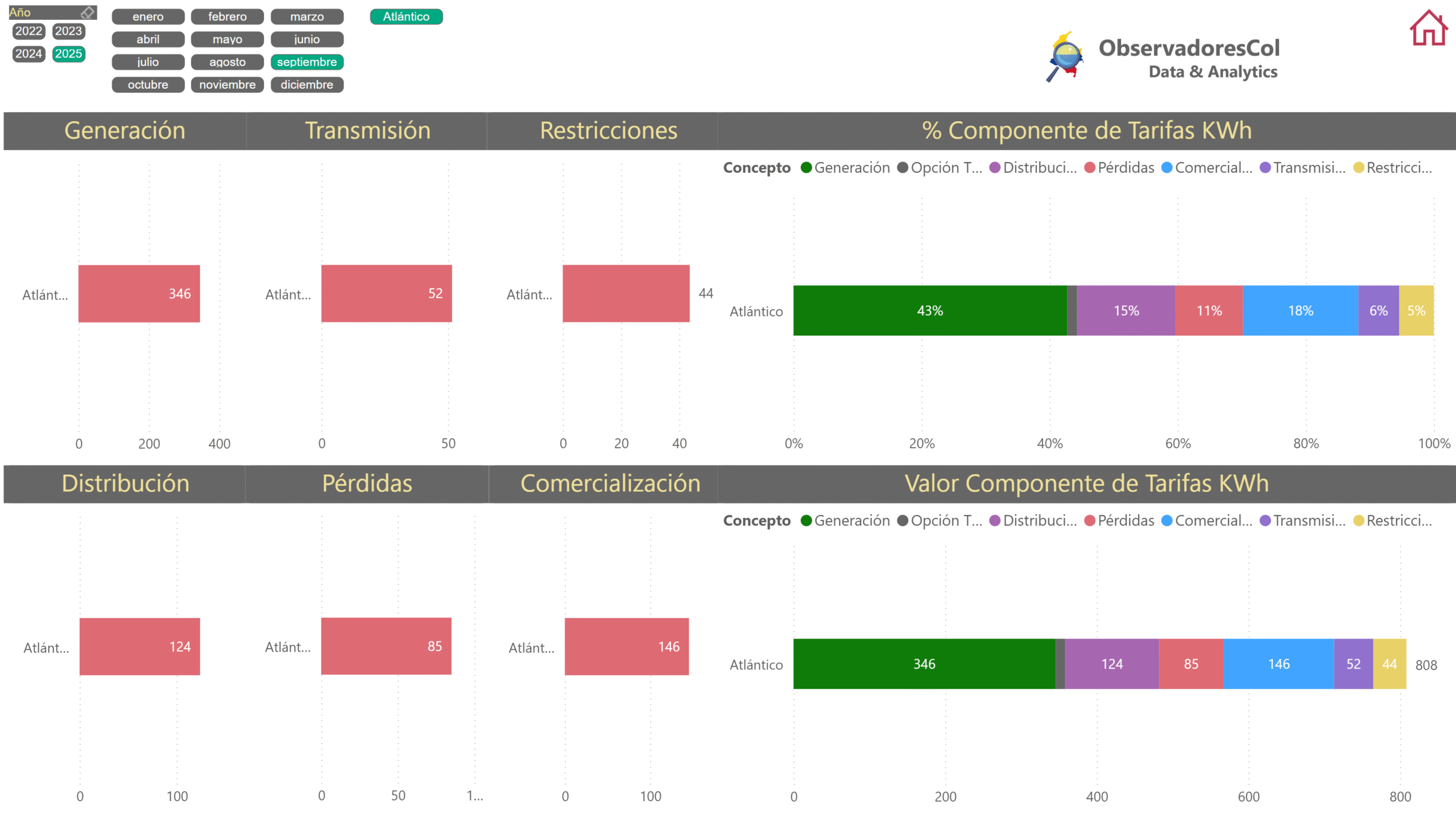 Bajó el componente de Generación en Sep -25: Julio 2025 $420 – Sept 2025 $346 = Reducción de $-74 = -17.6% en 3 meses
