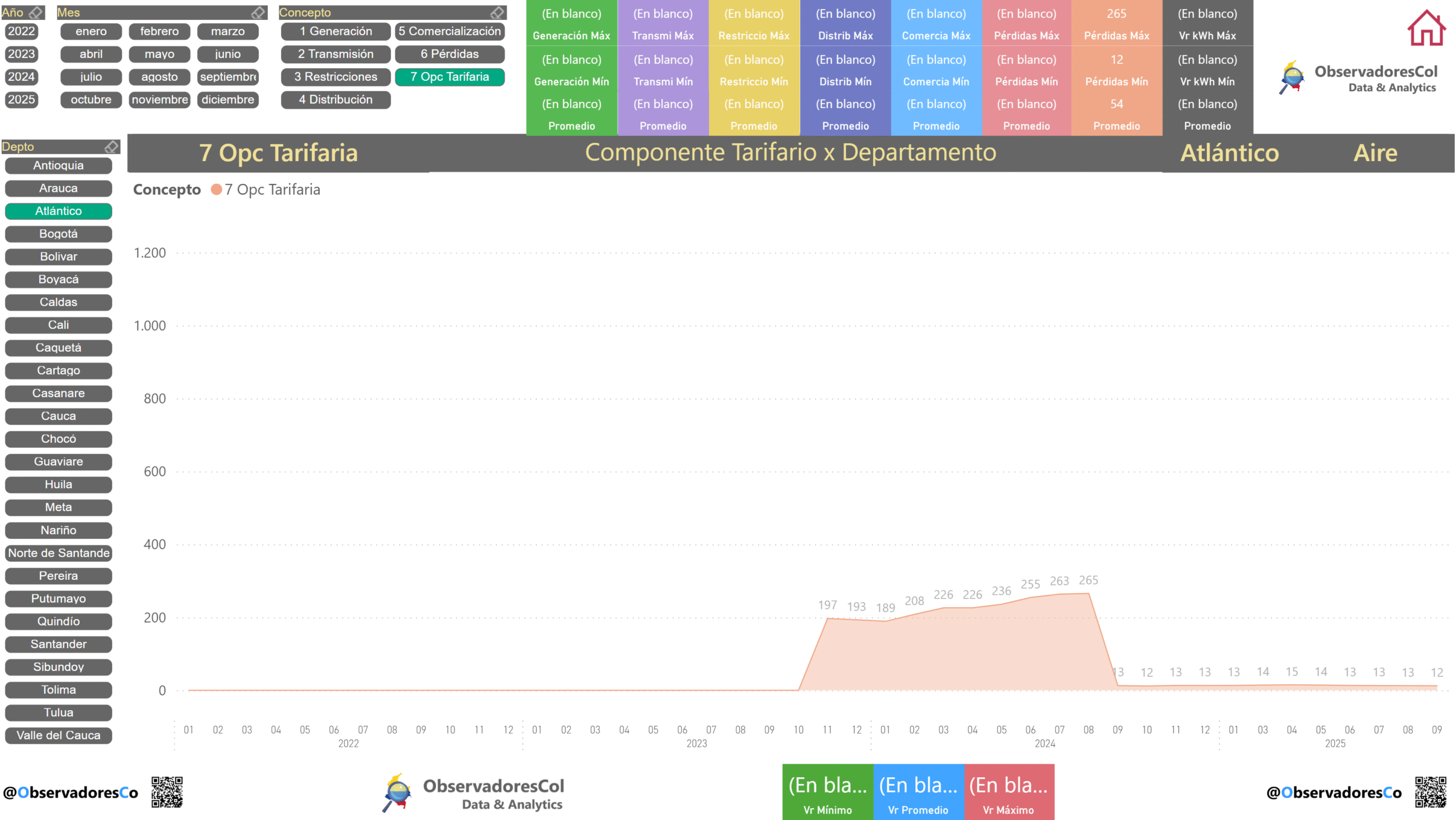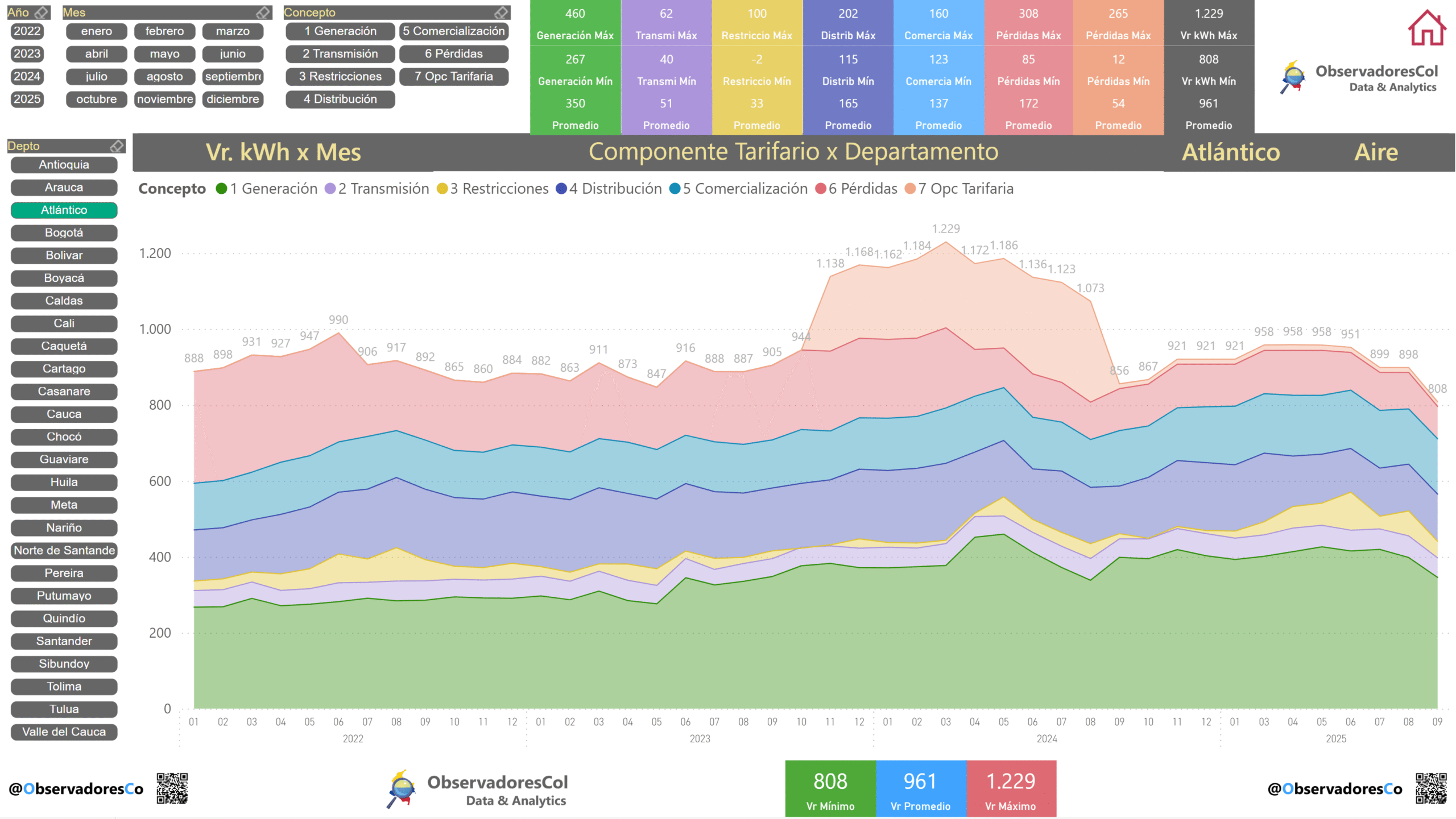 Los cálculos realizados por la superintendencia de servicios públicos no incluyen el concepto de Opción Tarifaria, que está calculado en $12 Pesos es decir la tarifa para el mes de Sep-25 es de $808 Pesos x kWh para los clientes de Air-e intervenida