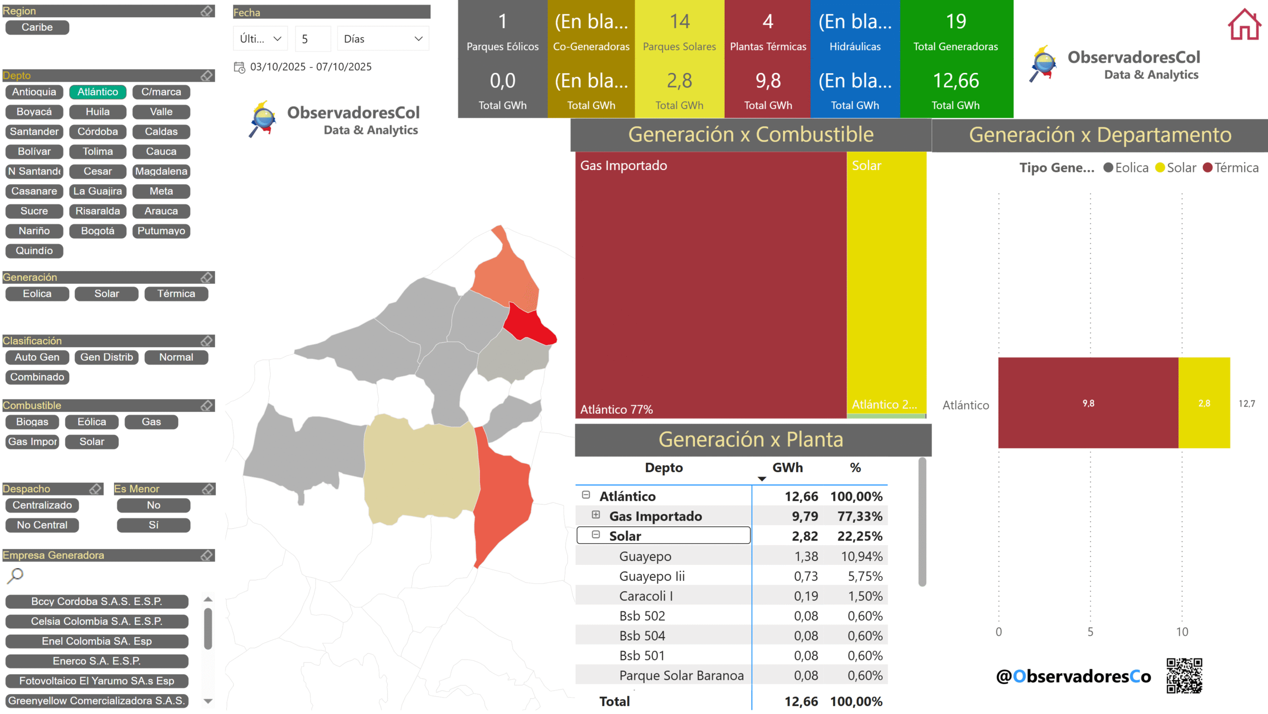 El departamento del Atlántico es líder a nivel nacional en generación Térmica y Solar.